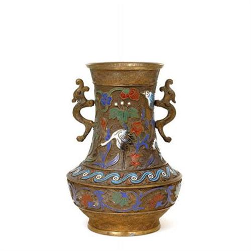 Old (1920's) Japanese Champleve Enamel Bronze Vase
