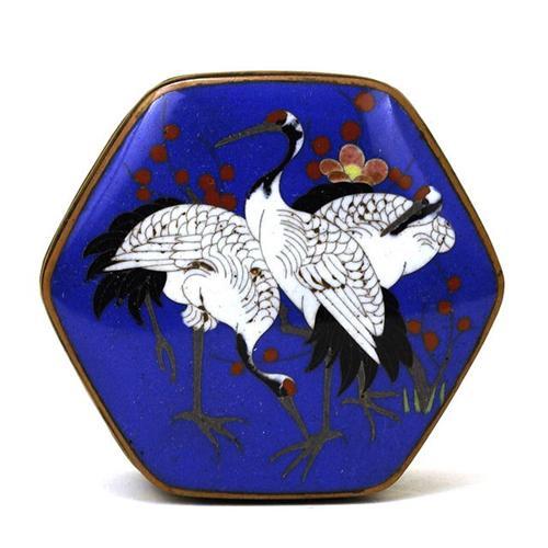 Old (1930's) Japanese Cloisonne Box with 3 Cranes