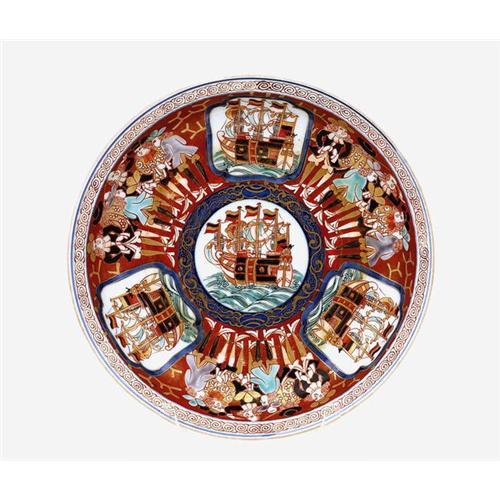 Old (1950's) Japanese Imari Foreigner Black Ship Plate Signed