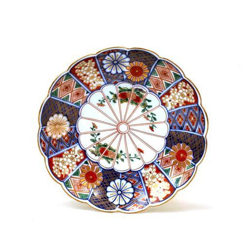 Old Japanese Imari Chrysanthemum Petals and Tapestry Plate Mark