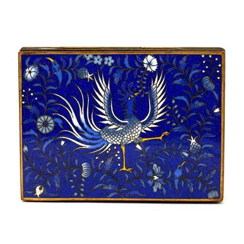 Old (1930's) Japanese Inaba Goldstone Cloisonne Box with Phoenix Marked