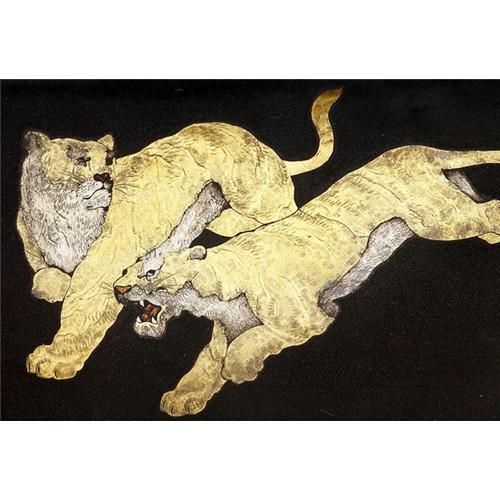 Old (1920's) Japanese Komai Gold & Silver Twin Tiger Cigarette Case Signed