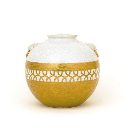 Old (1920's) Japanese Kutani Fu Lion Ears Gold Basket Vase