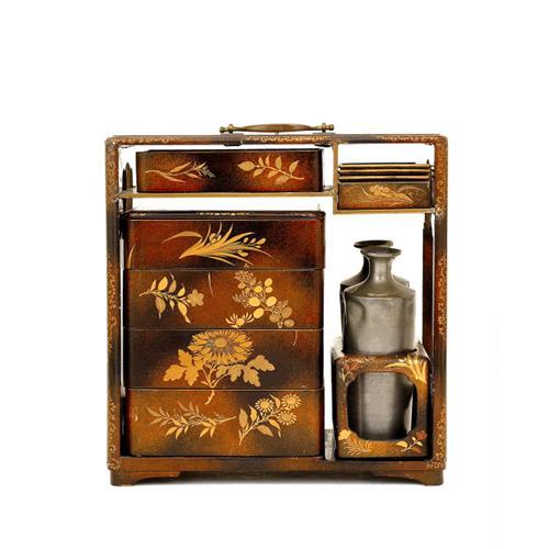 <tr><td>Title:Old Japanese Makie Lacquer Sake Chest Box Set </td></tr>