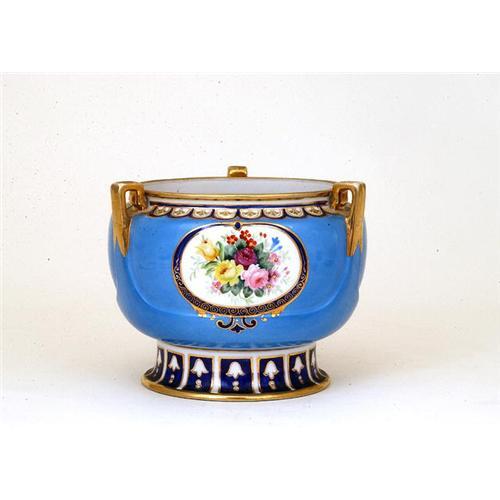 <tr><td>Title:Old Japanese Nippon Handle Cobalt Flower Vase</td></tr>