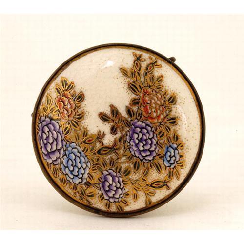 <tr><td>Title:Old Japanese Satsuma Flowr Button Belt Buckle</td></tr>