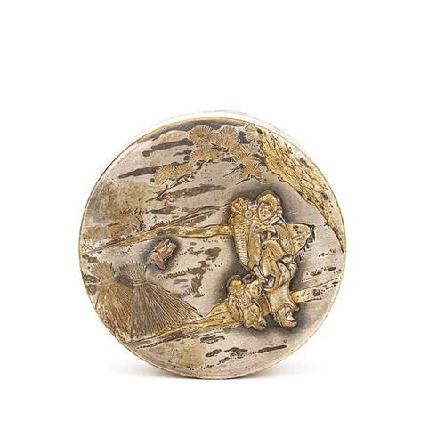 Old (1930's) Japanese Silver Plated Repousse Box Farmer's Wife & Son