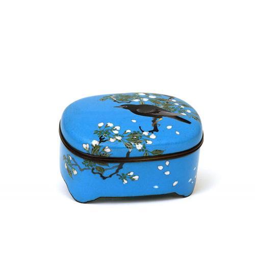 Old (1920's) Japanese Turquoise Cloisonne Box with Bird