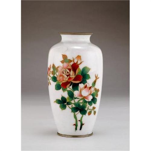 <tr><td>Title:Old Japanese White Cloisonne Vase with Roses</td></tr>