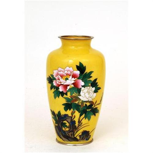 Old Japanese Yellow Cloisonne Vase with Flowers