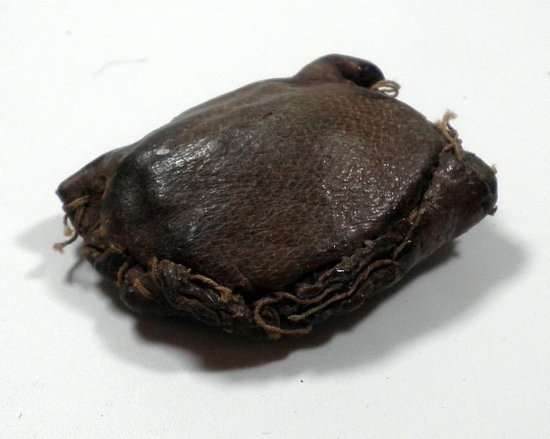 Old Jewish pendant inside leather case, has never been opened, dimensions: 3.5x5 cm.