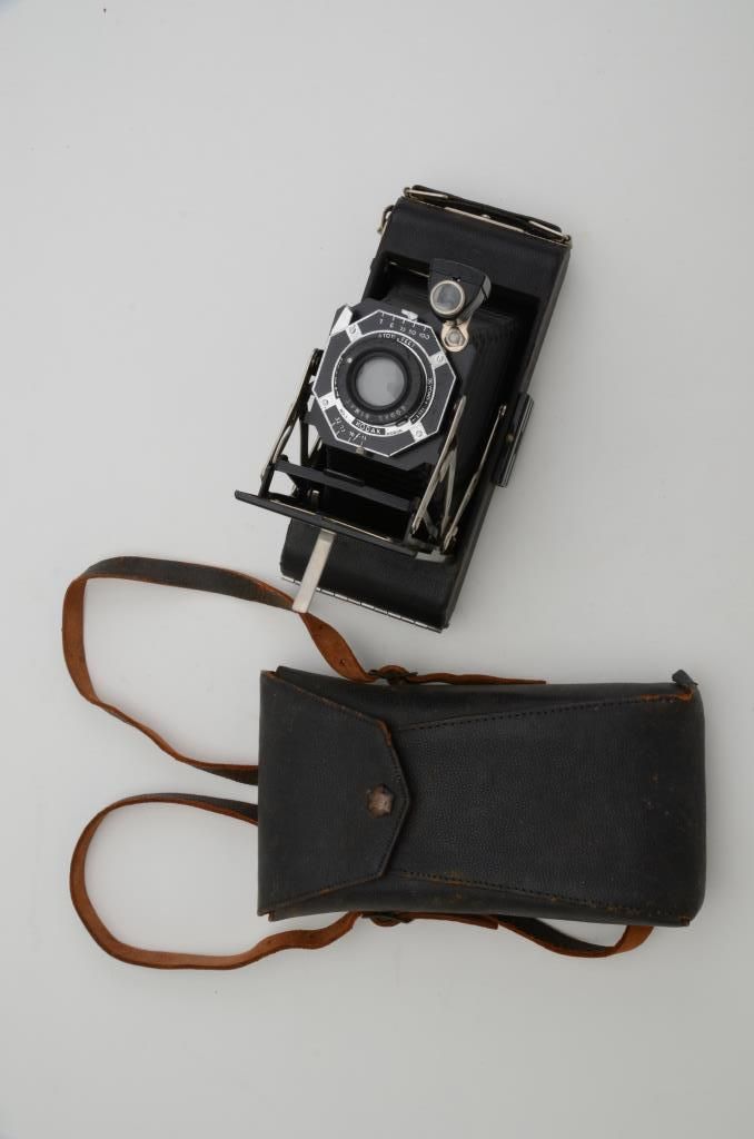 Old Kodak camera and carry case; great display piece; unknown working order. Est.: $10-$20.