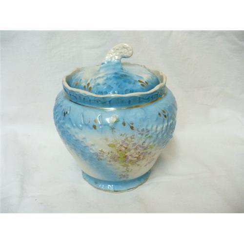 This Old Biscuit Jar is marked Limoge it also has some other lettering on it I can not read. It is a very interesting pattern. It shows wear inside, but has no chips or cracks.This is a beautiful old biscuit jar that would be great in any collection.