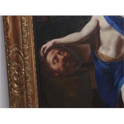 Bolognese Unsigned David and Goliath Antique Gilt Frame Relinedf Some Overpainting and Restoration