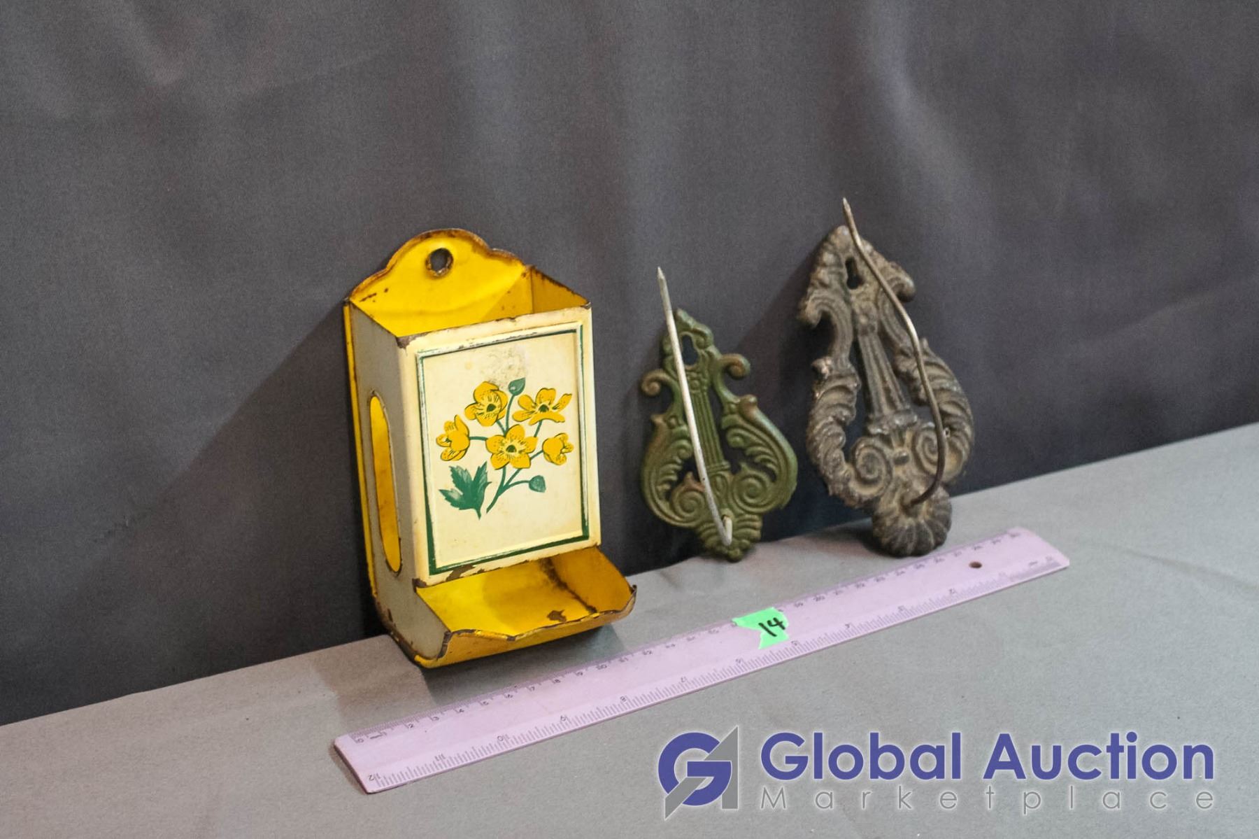 Old Match Box Holder W/ Cast Store Bill Holders (2)
