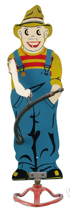 Old Metal Stand Up Spinkler "Sprinklin Samso" MFG By Pla-Wood Products Co. Painesville, OHIO (Farmer) - 30" Tall