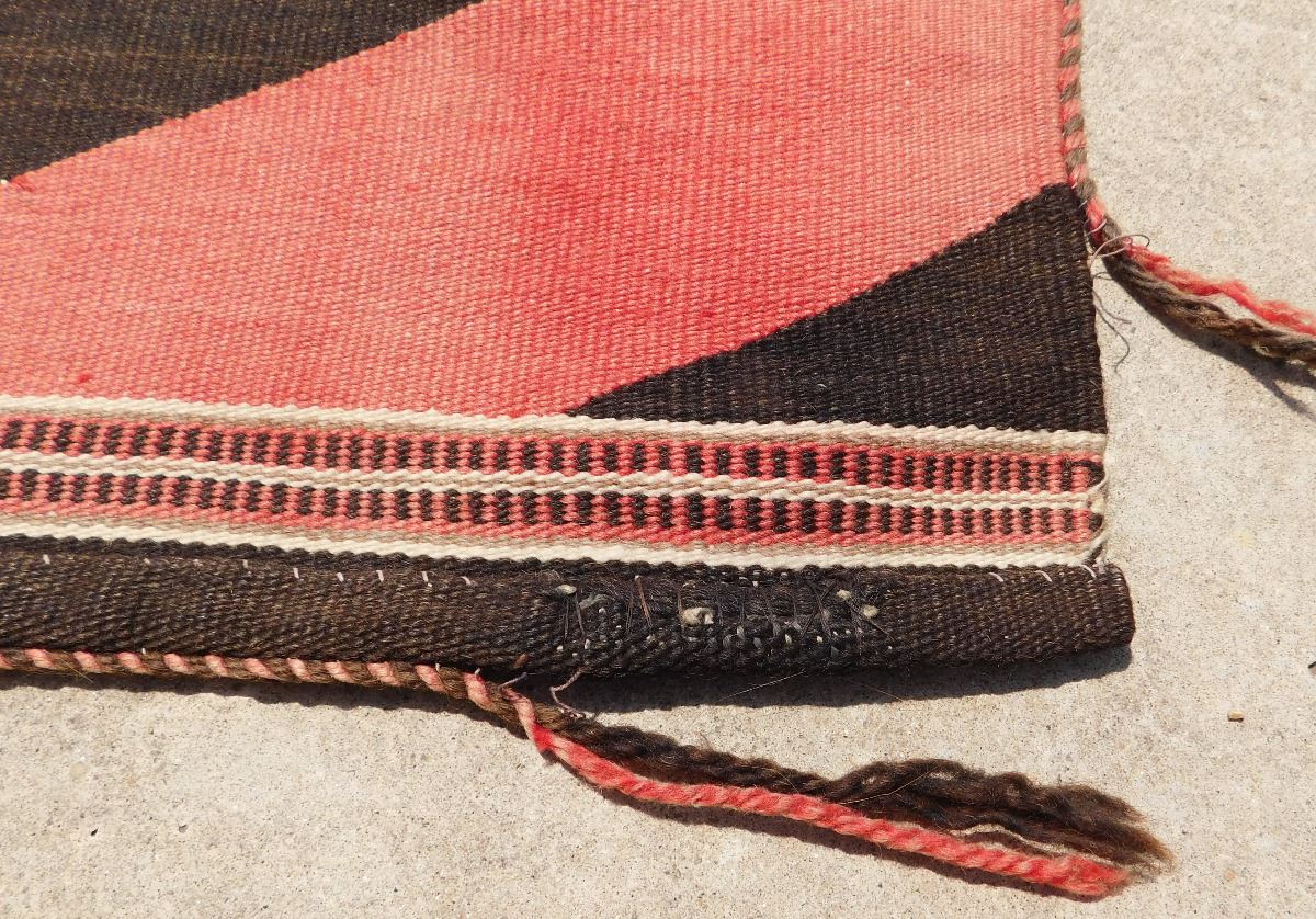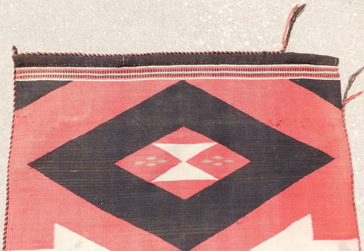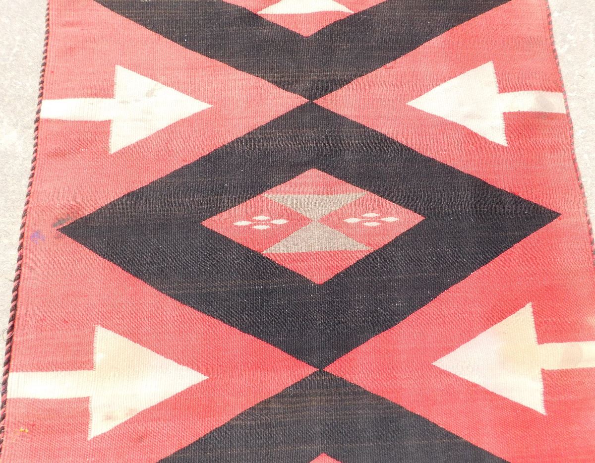 Old Mexican Weaving, circa 1930's. Made of wool and cotton, this weaving with arrows measures 28 x 58 inches. It is from Central Mexico. Condition: Some stains and color fading, see images. Shipping: $30.00.