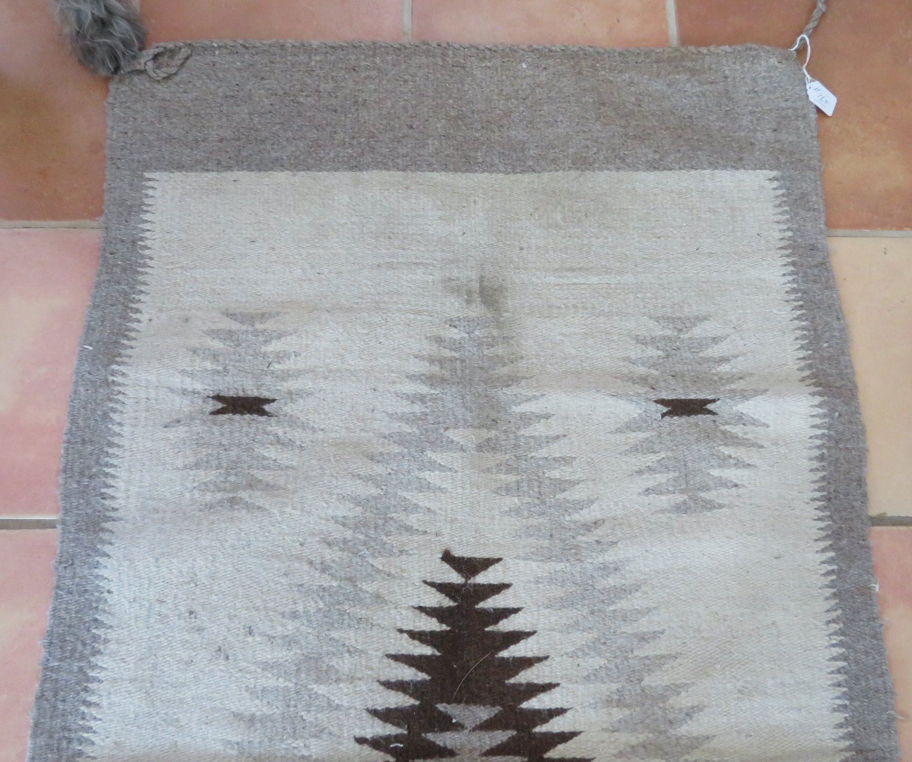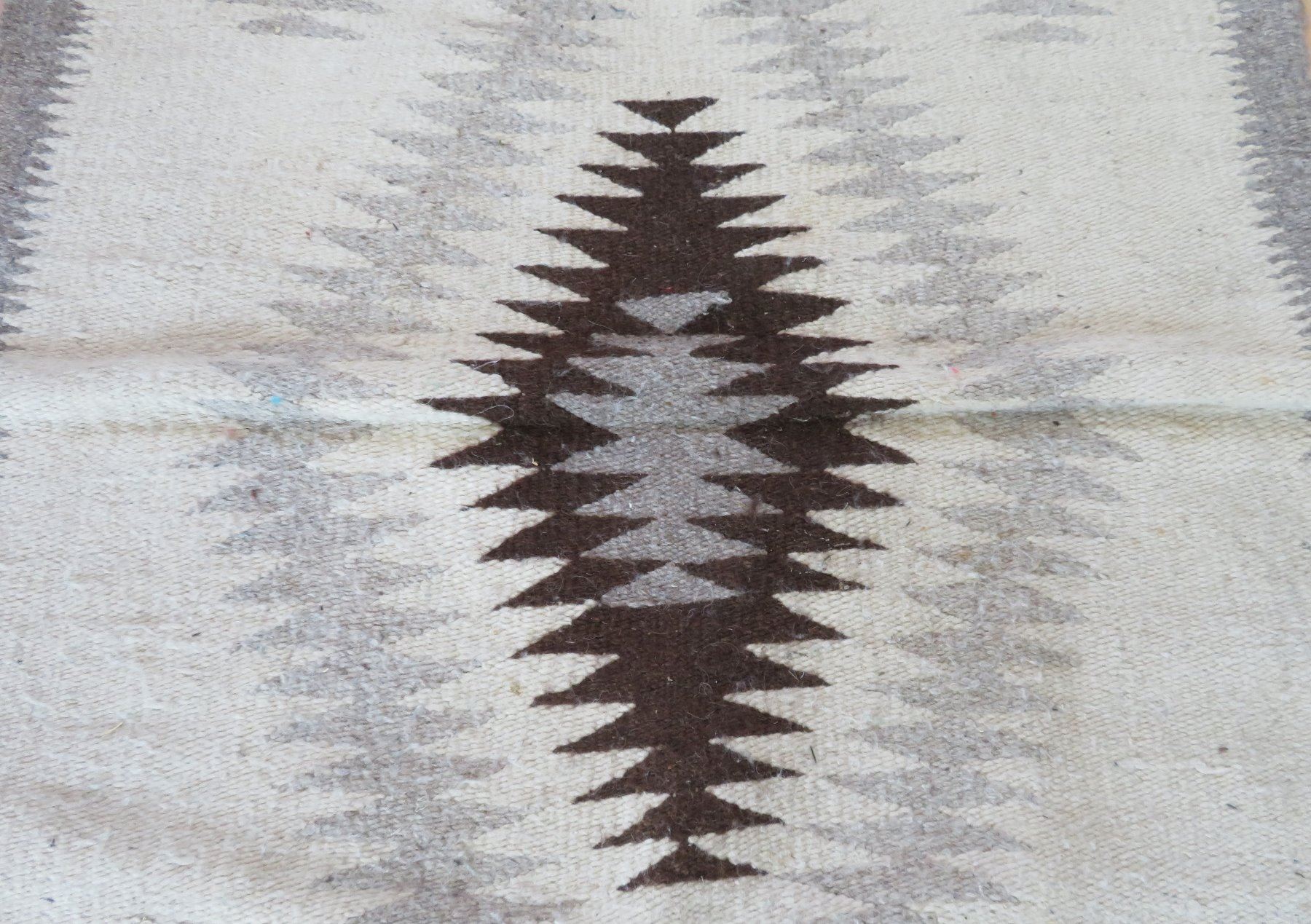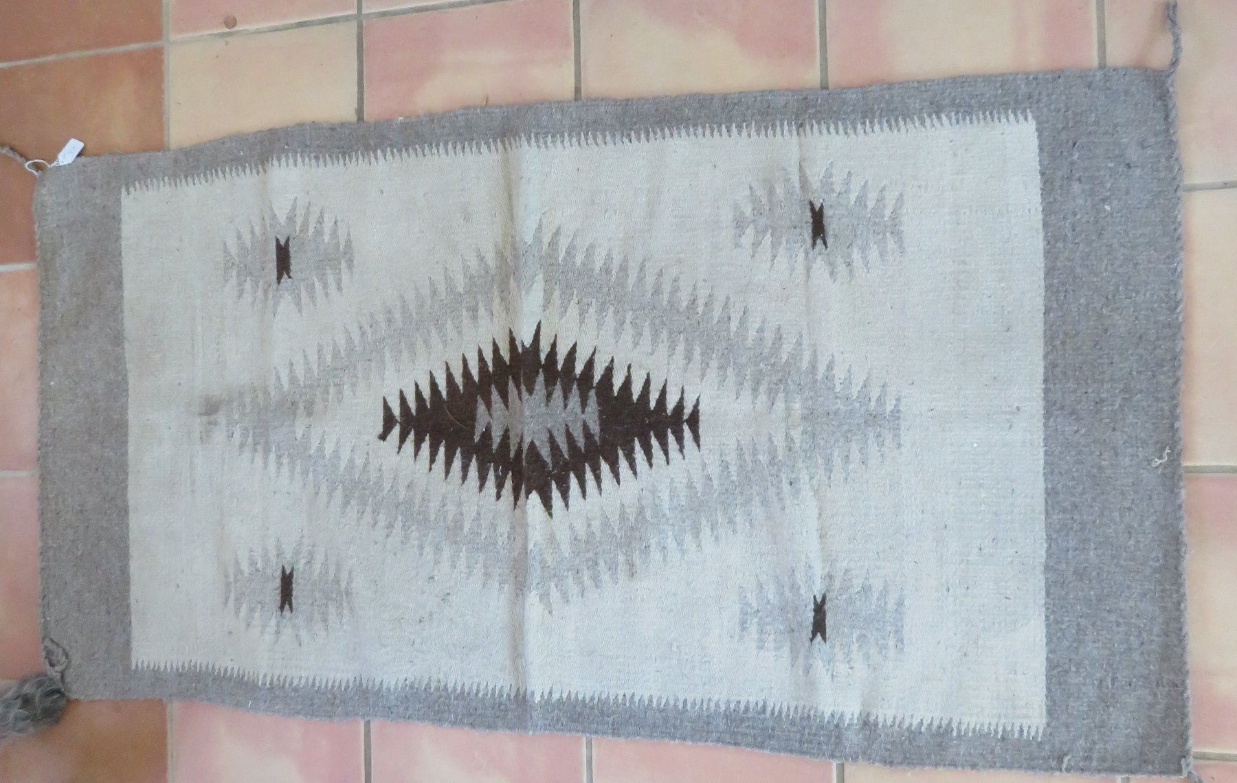 Old Mexican Weaving, c. 1940s. Made of cotton and wool, the item measures 59" x 31". Mexico City, Mexico. Condition: Some wear and stains, see images. Shipping: $27.50 w/insurance and signature, due to size.