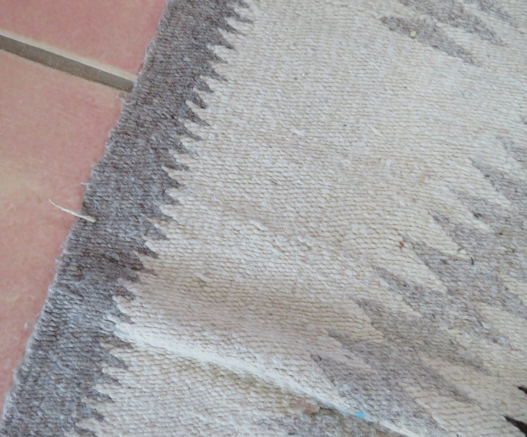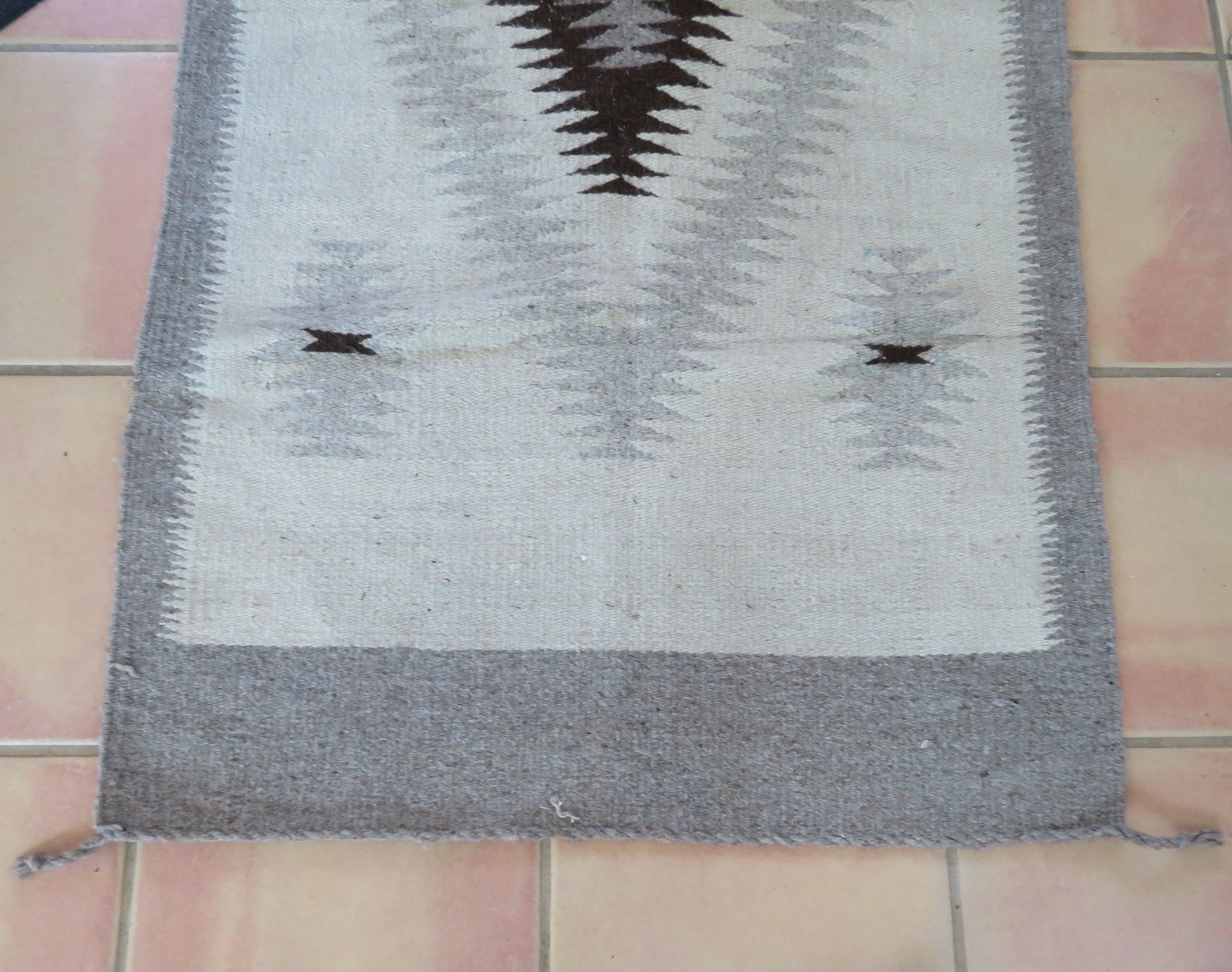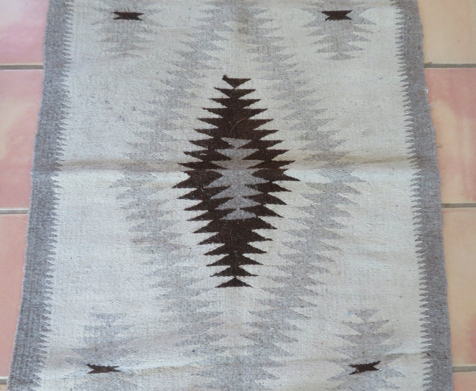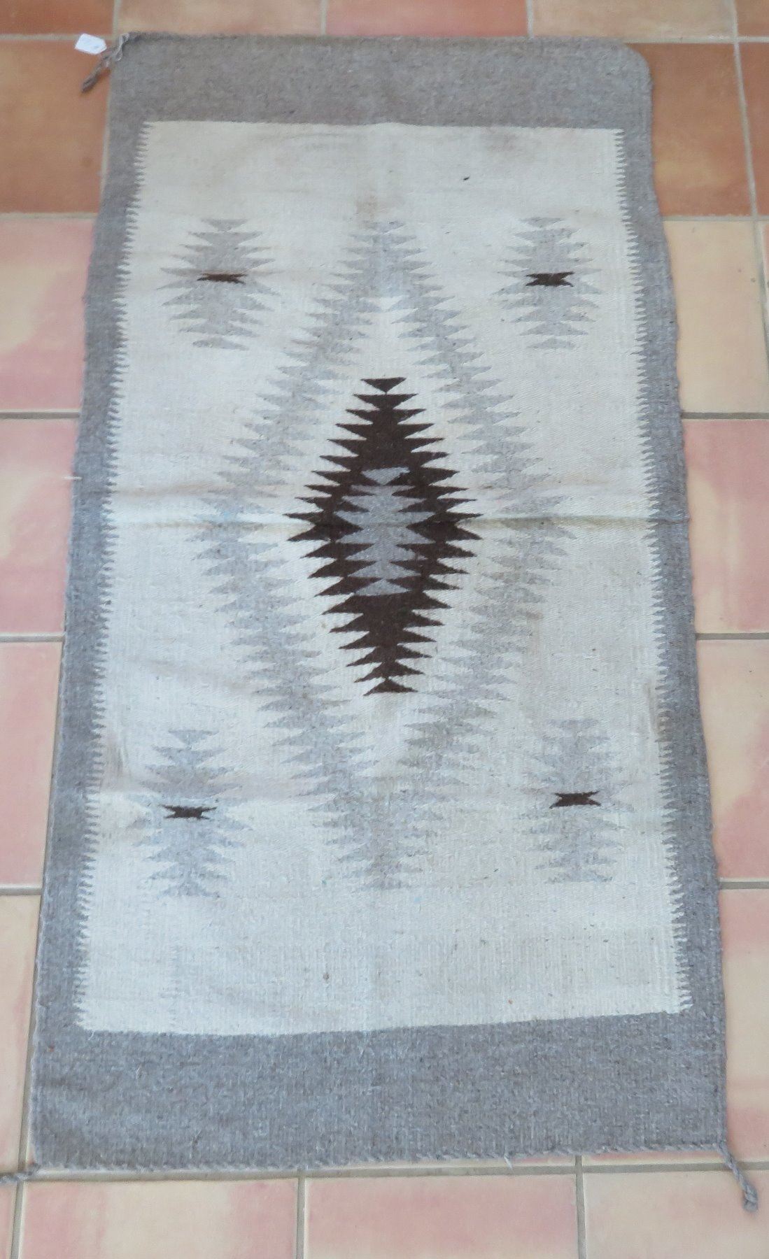 Old Mexican Weaving, c. 1940s. Made of cotton and wool, the item measures 59" x 31". Mexico City, Mexico. Condition: Some wear and stains, see images. Shipping: $27.50 w/insurance and signature, due to size.