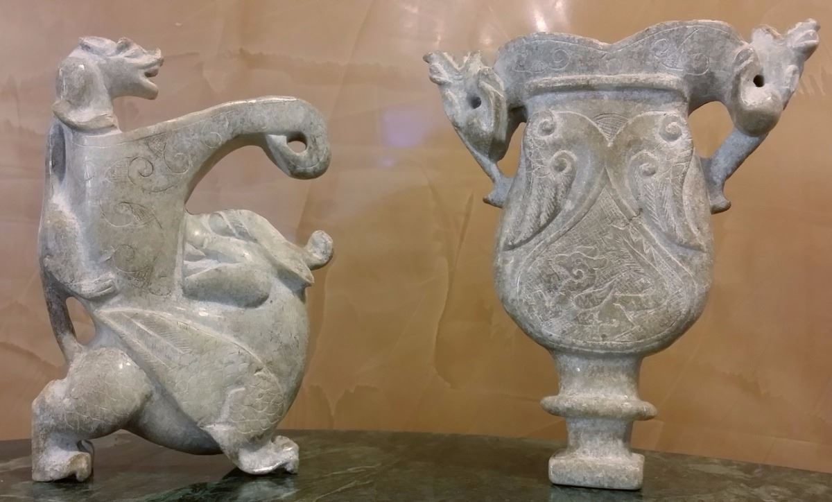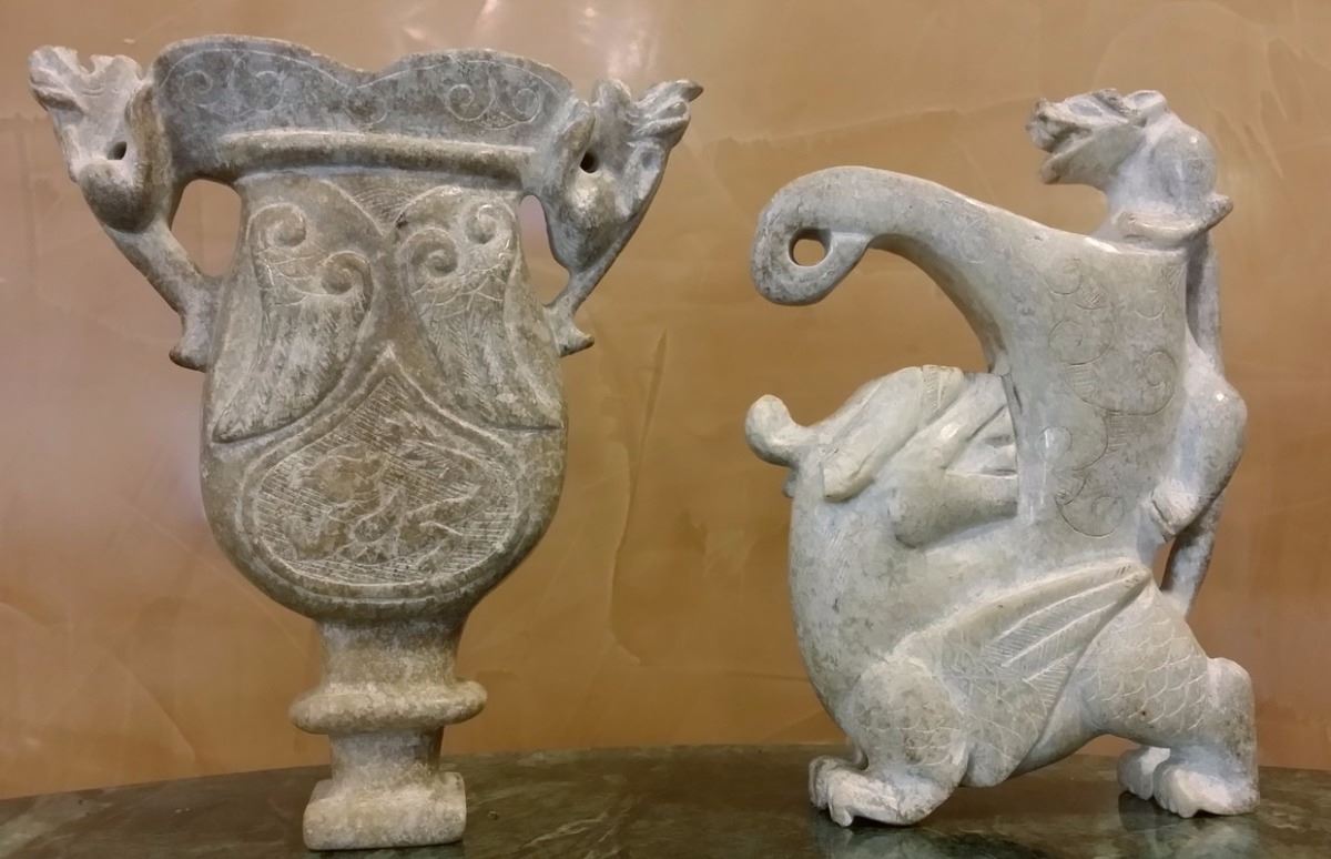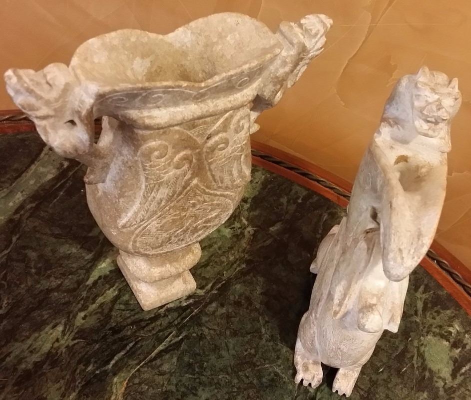 Old Pair of Ming Period Chinese Stone Sculptures Symbolizing Chinese Guardian Protector's Natural Stone Depiction of One-Horned Tianlu