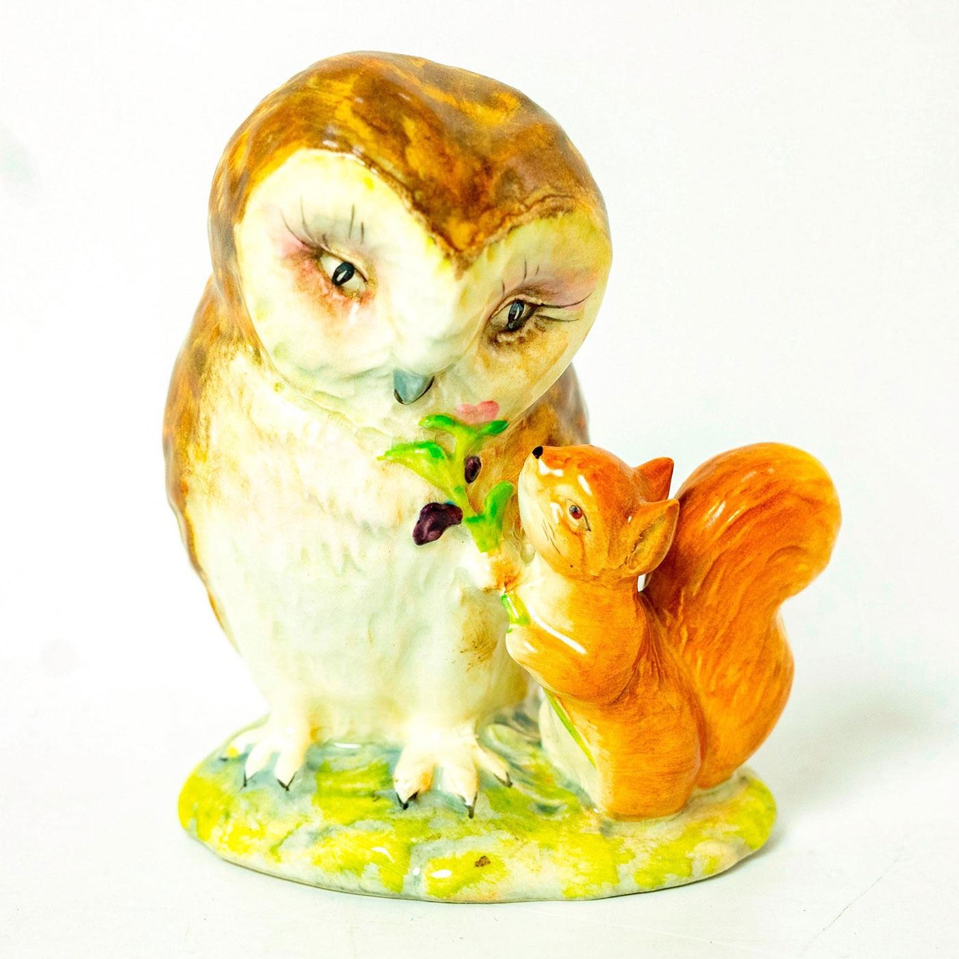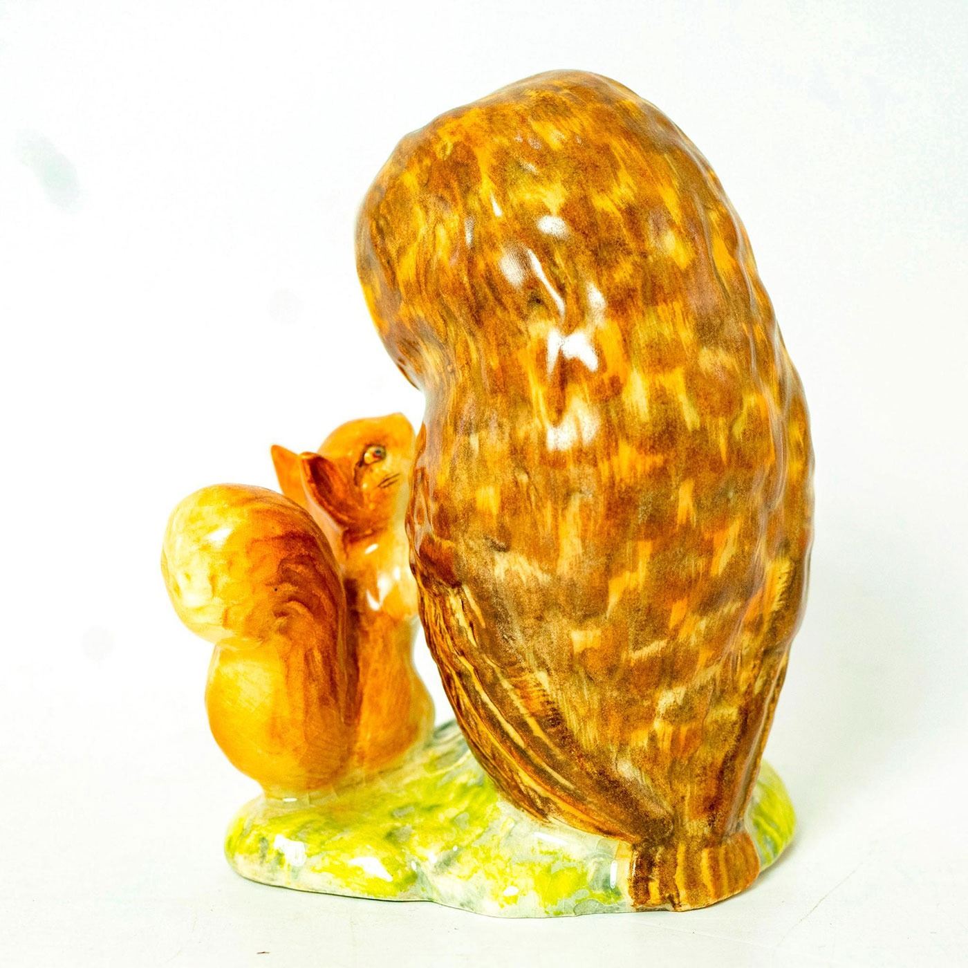 Gold Oval Backstamp. Brown /Orange owl, red squirrel.