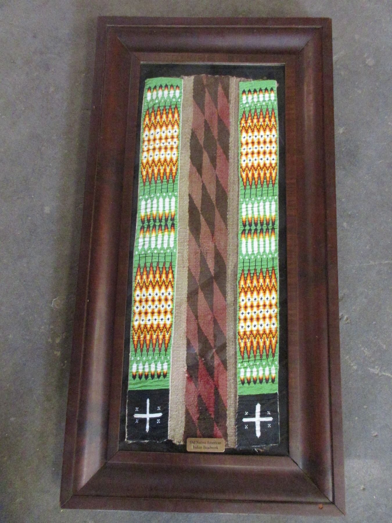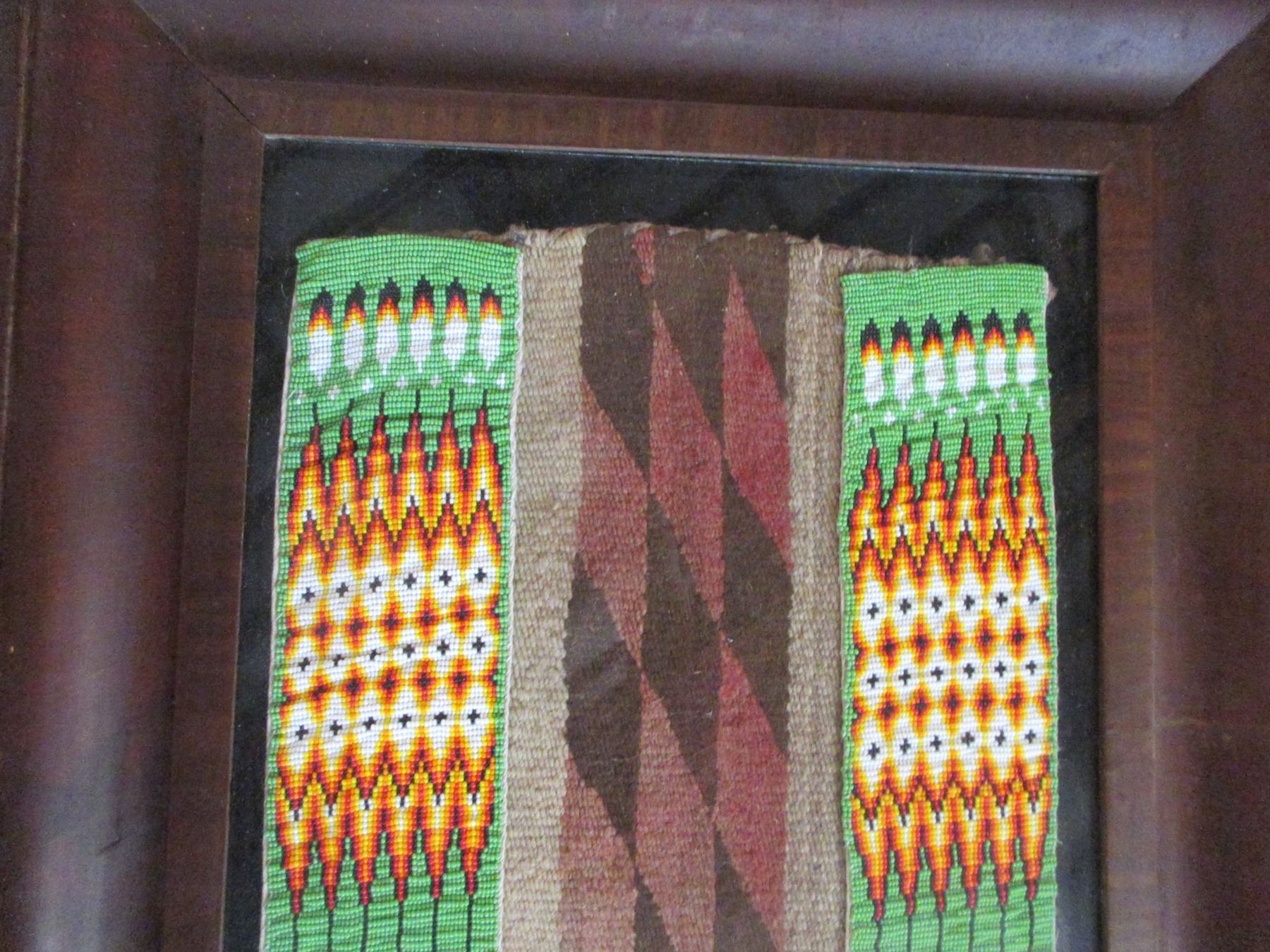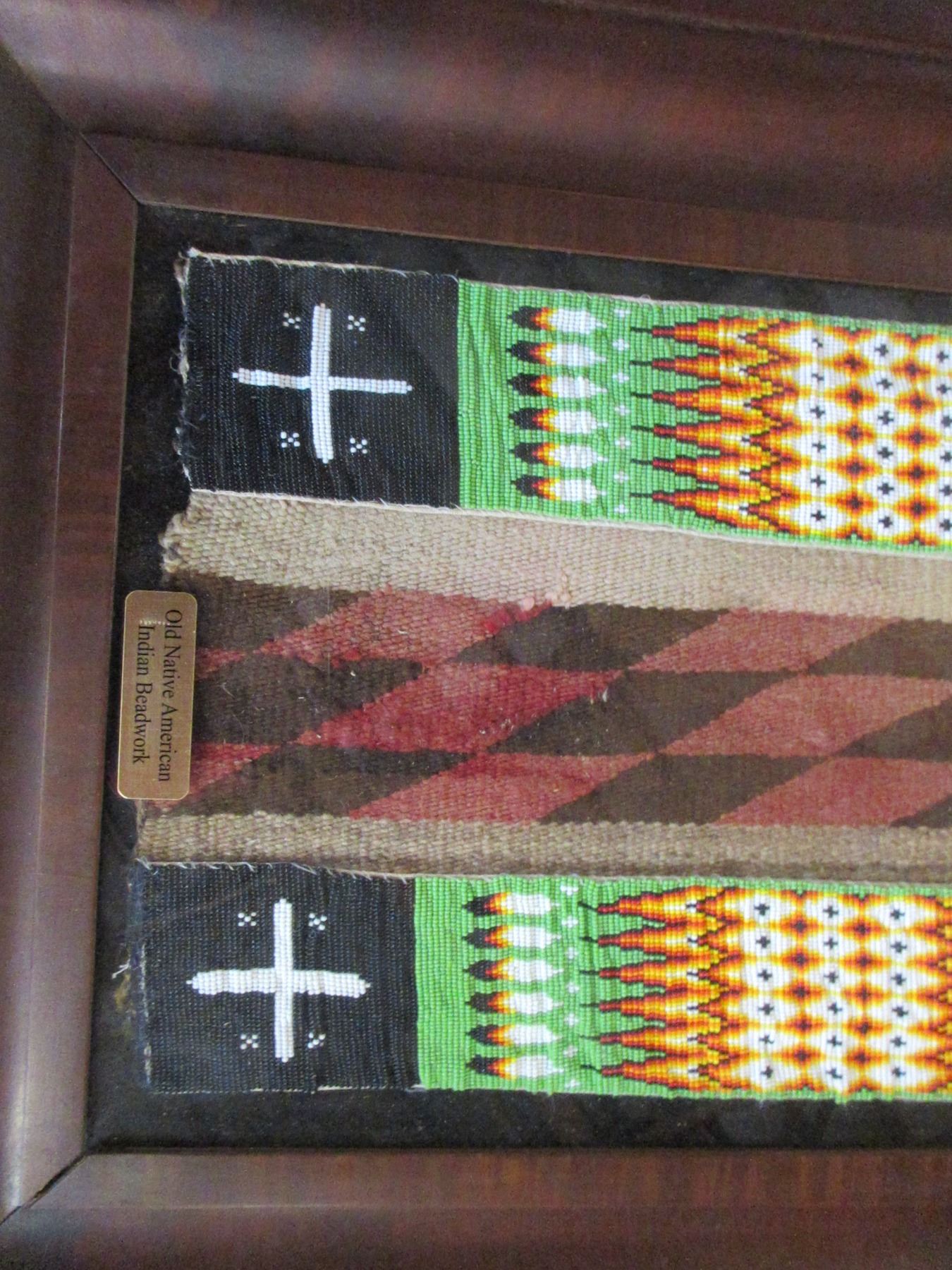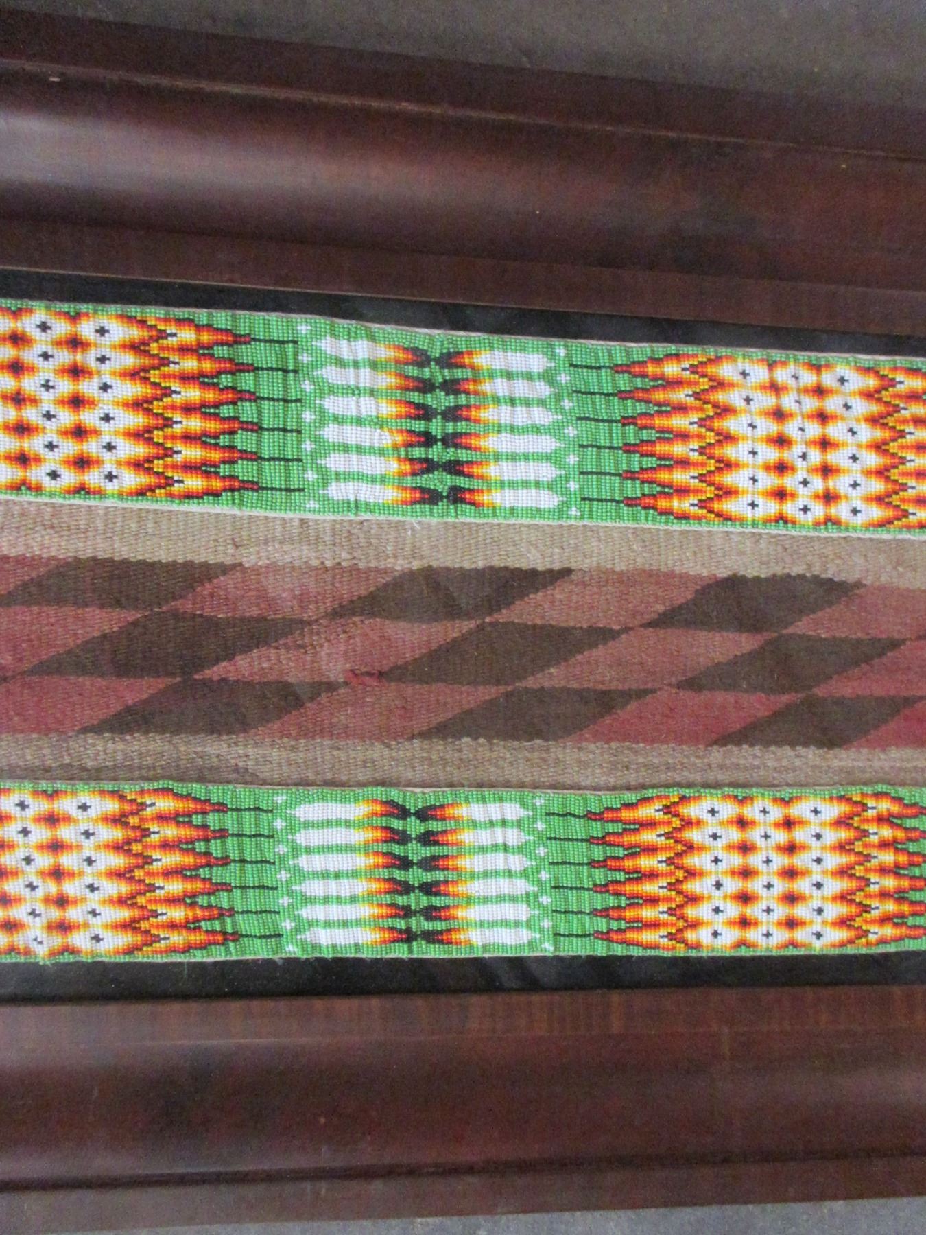 Old Native American Beadwork On A Navajo Blanket- 42" X 2"