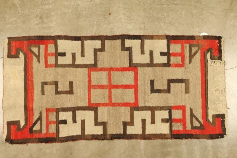 in red, black, white, and gray. Measures 42"x21" In poor condition heavy losses and staining