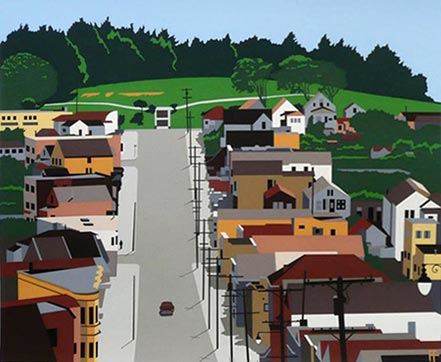 Nostalgia for going home, by modernist artist Armond Fields is a 22x28" Limited edition serigraph on paper. Signed With COA