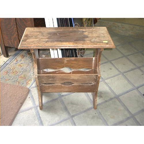 Old Oak Magazine Table. In great restorable condition. Needs refinishing. Has beveled edging on table top. Stands 23 1/2" tall by 23" across. Very solid piece. Needs a little TLC. But has great potential.