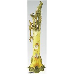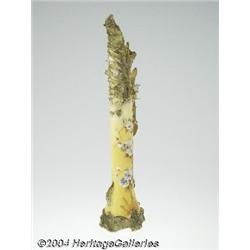 Old Paris: <B>AN ENAMELED AND CARVED EWER (Carlsbad, Austria) </B></I><BR>Carlsbad, Austria, c.1890<BR><BR>The elaborately sculpted and decorated enameling depicts flowers with vines and leaves sculpted out of top of sides, gilt accents, stamped under glaze <I>Carlsbad Austria</B></I><BR>20in. high <BR><BR><B>Important notice:</B> Heritage usually auctions material at the rate of 200-250 lots per hour. On some occasions eBay Live bid software or the Internet may not be able to keep up with the pace of the auction. We recommend placing a realistic absentee bid now as insurance to avoid disappointment. Occasionally the auctioneer may eliminate or reject an eBay Live bid, and the auctioneer may also reopen a lot after the close of the eBay live bidding (usually because we missed an audience bid), and may reject your bid even if it shows you as the winning bidder. By bidding via eBay Live, you agree that Heritage may award the lot to another bidder at its sole discretion under the circumstances described above or any other reasonable circumstances. Since eBay bids are not shown to us until we open the lot on the floor, we treat those bids just like floor bids. In most cases the floor responds before the eBay bid is presented to us, due to Internet lag time, so for consistency we have made it a policy that floor bids are always considered first over tie eBay live bids. Also please note that all Heritage lots purchased through eBay Live carry a 24.5% Buyer's Premium. Please make sure you read the Terms and Conditions before you bid.