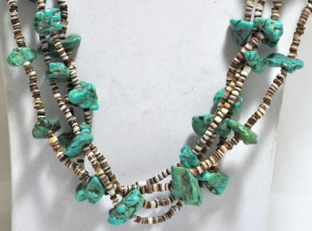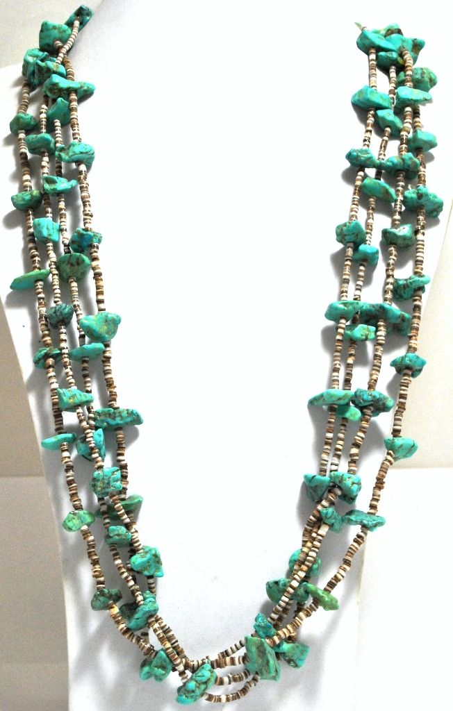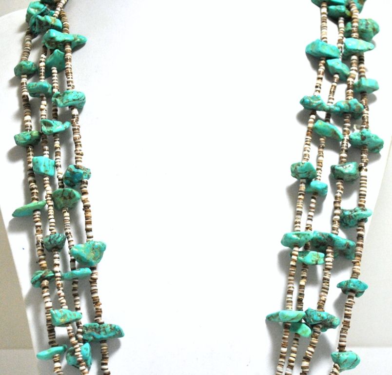 Old Pawn 4-Strand Turquoise & Heishi Shell Necklace