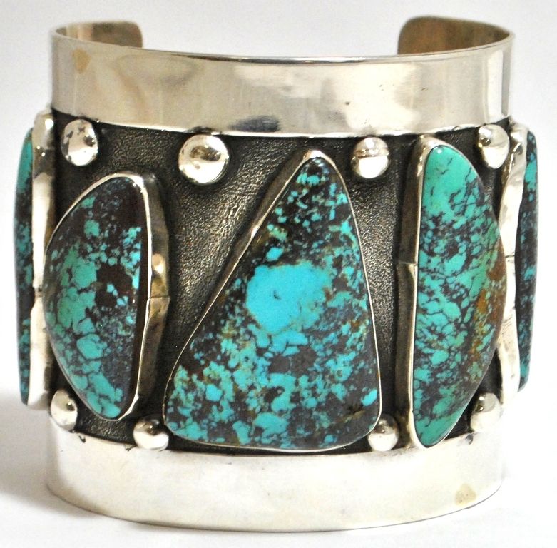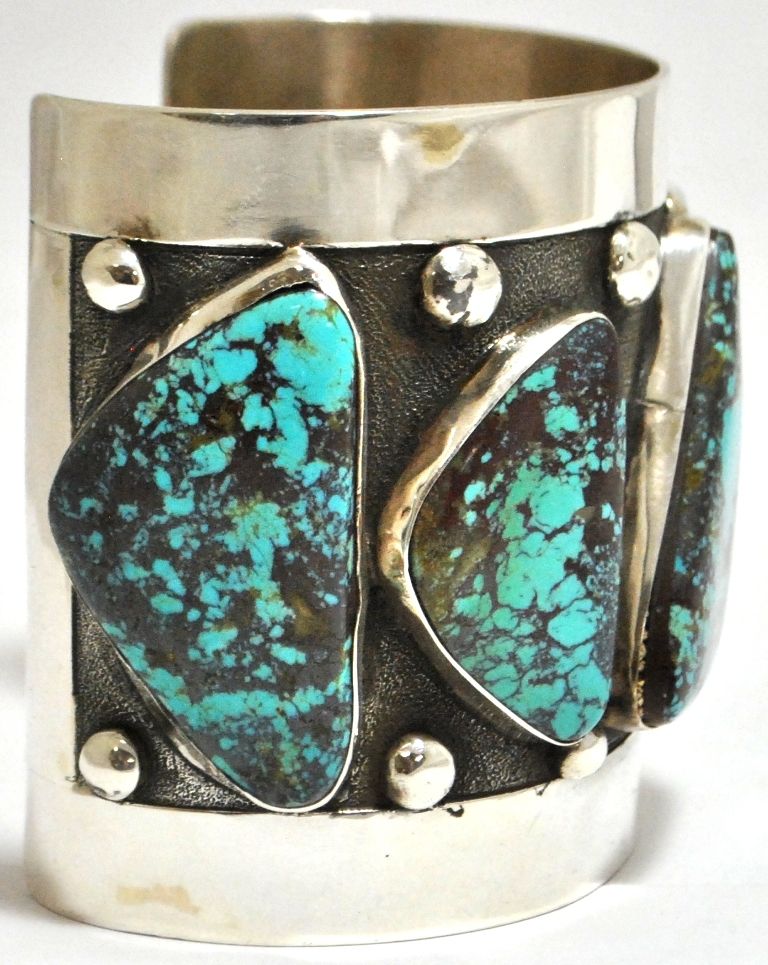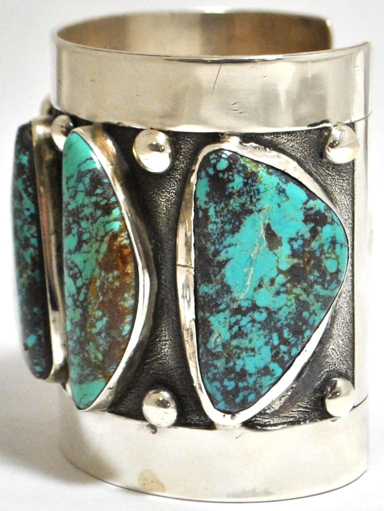 Old Pawn Blue Diamond Turquoise Sterling Silver Cuff Bracelet - CB