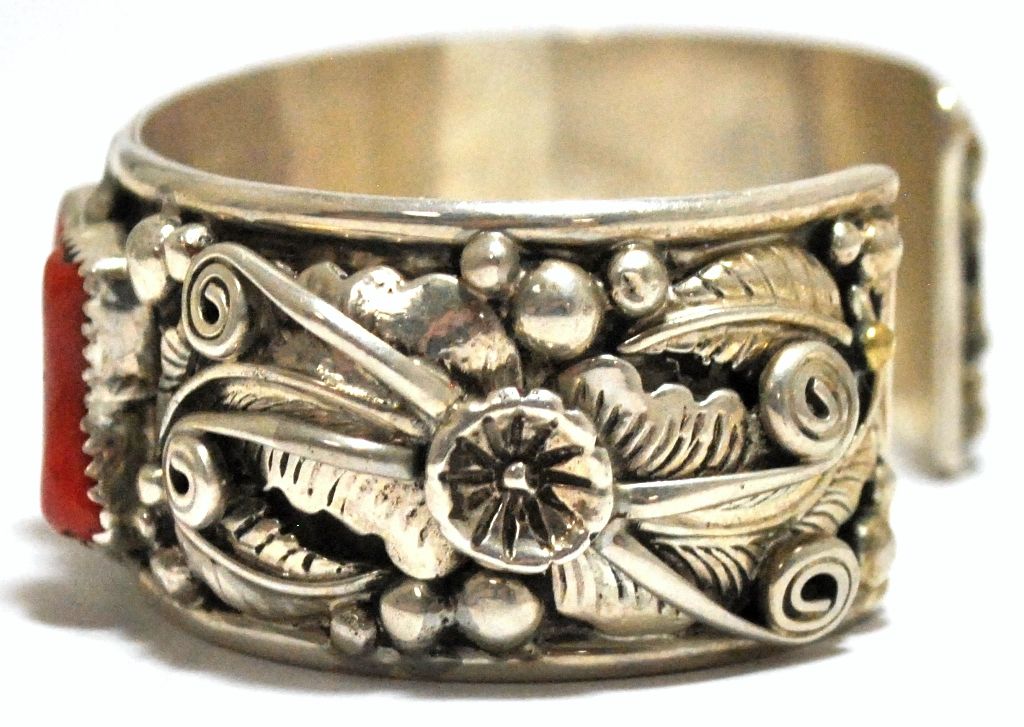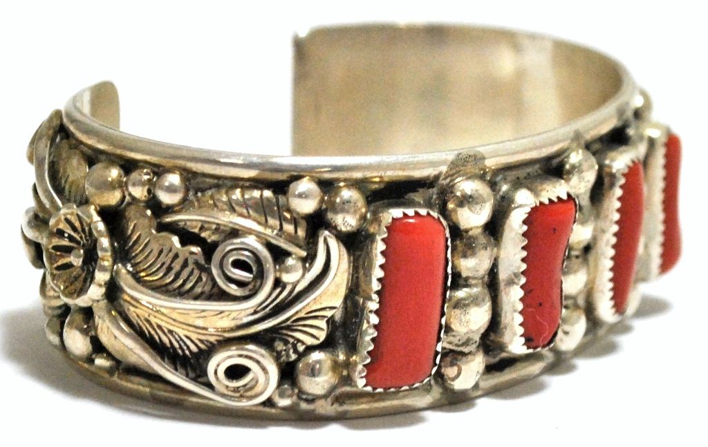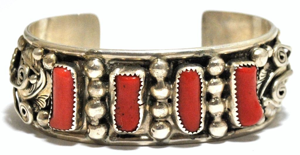 Old Pawn Coral Sterling Silver Cuff Bracelet