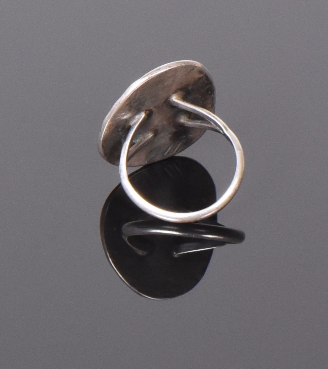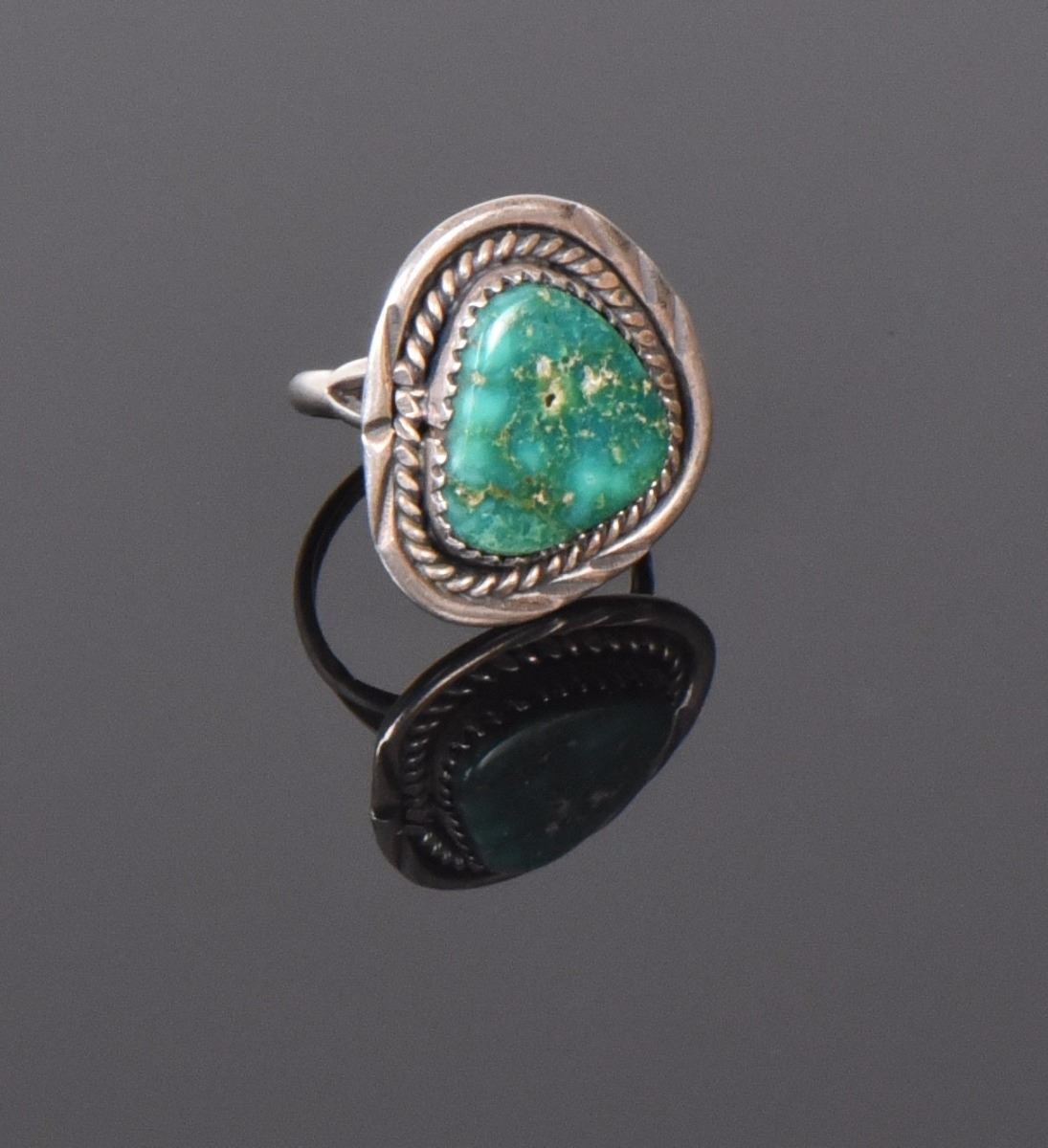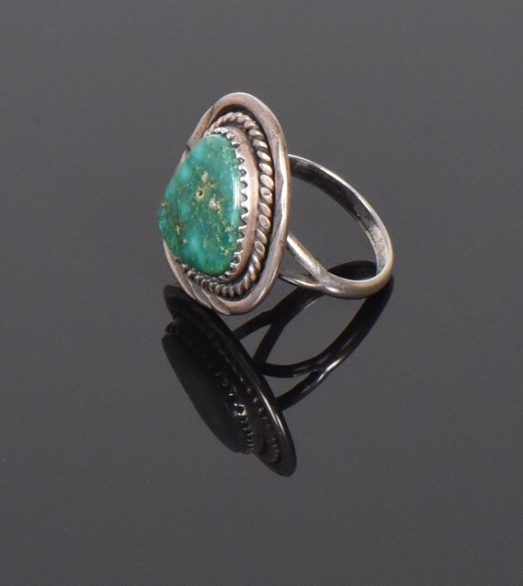Old Pawn Green Turquoise Sterling Silver Ring. Ring Size: 7 Silver Tested. Estimated more than 50 yrs old. Native Americans also known as American Indians or just simply Indians are considered to be people whose pre-Columbian ancestors were indigenous to the lands within the nation's modern boundaries. These peoples were composed of numerous distinct tribes, bands, and ethnic groups, and many of these groups survive intact today as partially sovereign nations. The Iroquois, living around the Great Lakes and extending east and north, used strings or belts called wampum that served a dual function: the knots and beaded designs mnemonically chronicled tribal stories and legends, and further served as a medium of exchange and a unit of measure. The keepers of the articles were seen as tribal dignitaries. Pueblo peoples crafted impressive items associated with their religious ceremonies. Kachina dancers wore elaborately painted and decorated masks as they ritually impersonated various ancestral spirits. Sculpture was not highly developed, but carved stone and wood fetishes were made for religious use. Superior weaving, embroidered decorations, and rich dyes characterized the textile arts. Both turquoise and shell jewelry were created, as were high-quality pottery and formalized pictorial arts. Navajo spirituality focused on the maintenance of a harmonious relationship with the spirit world, often achieved by ceremonial acts, usually incorporating sand painting. The colors made from sand, charcoal, cornmeal, and pollen depicted specific spirits. These vivid, intricate, and colorful sand creations were erased at the end of the ceremony. (Wikipedia) Size: See Ruler Photo. (Photos Represent The Condition Of The Lot.)