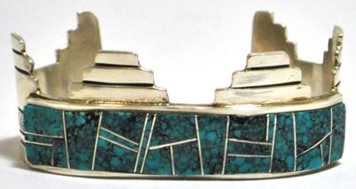 Old Pawn Kingman Turquoise Sterling Silver Cuff Bracelet - VV
