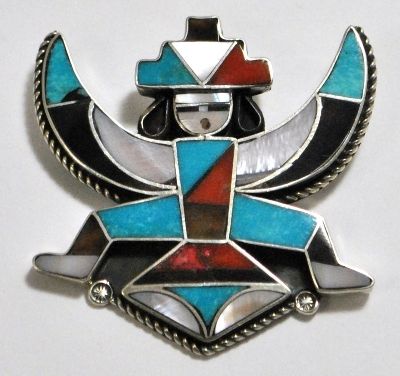 Old Pawn Multi-Stone Knifewing Kachina Sterling Silver Pin - M