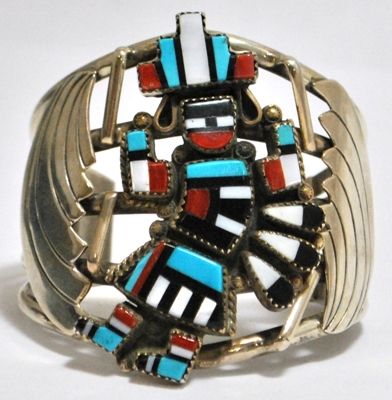 Old Pawn Multi-Stone Rainbow Kachina Sterling Silver Cuff Bracelet - M