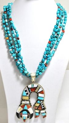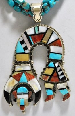Old Pawn Multi-Stone Rainbow Kachina Sterling Silver Necklace - B. Lee