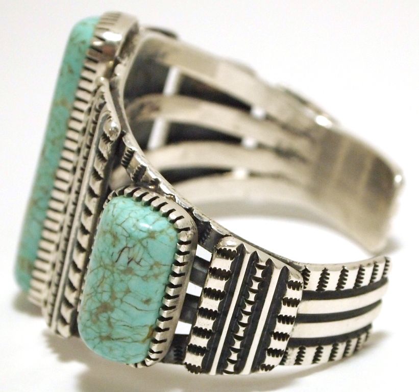 Old Pawn Navajo #8 Turquoise Sterling Silver Cuff Bracelet - Harrison Jim