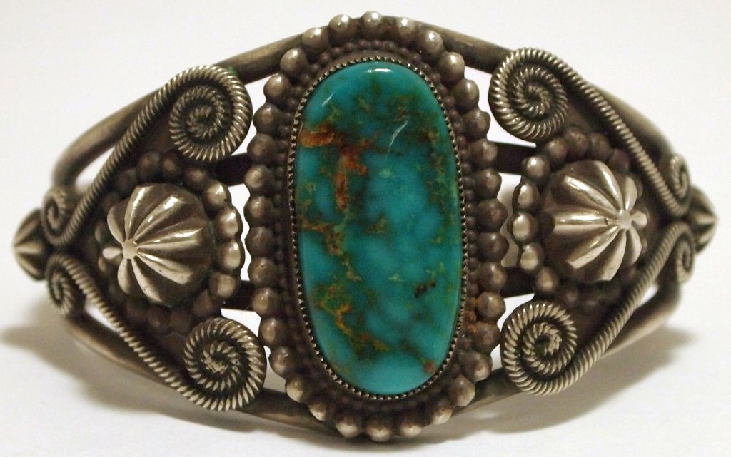 Old Pawn Navajo Ajax Turquoise Sterling Silver Small Cuff Bracelet - Rick Martinez
