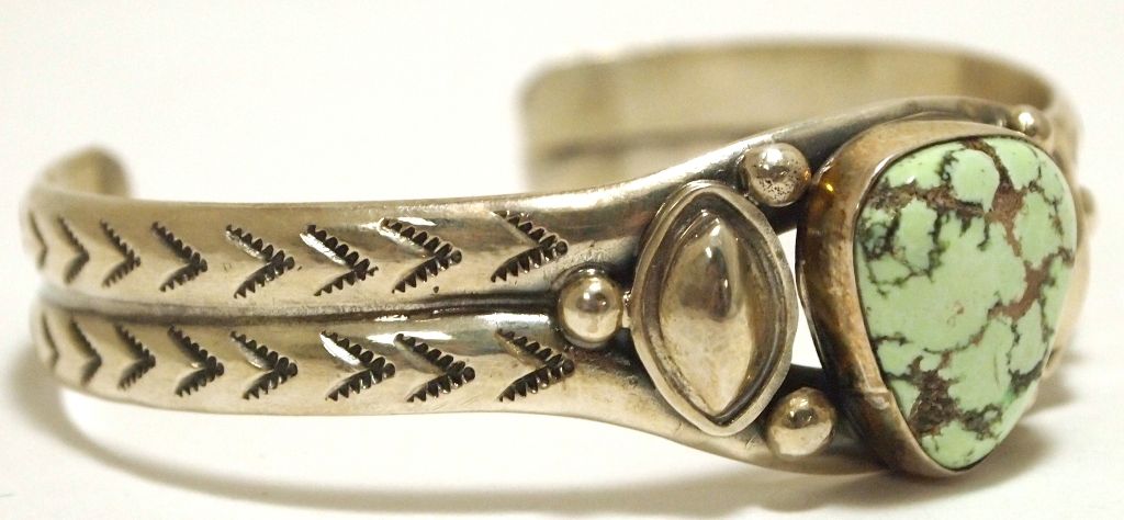 Old Pawn Navajo Carico Lake Turquoise Sterling Silver Cuff Bracelet - Lydia Begay