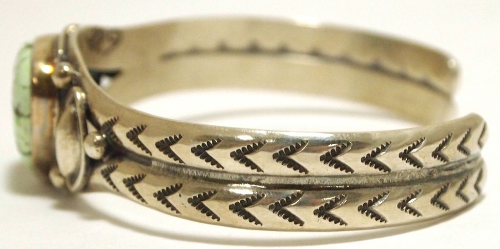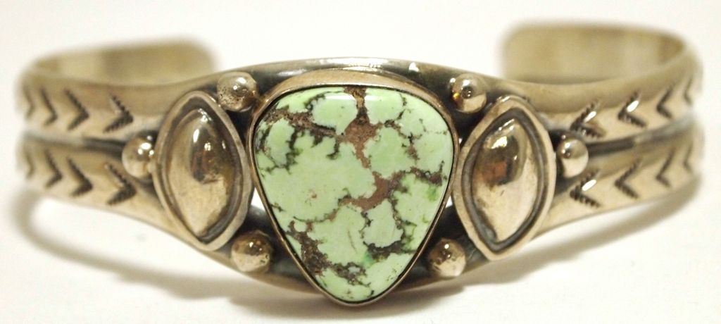 Old Pawn Navajo Carico Lake Turquoise Sterling Silver Cuff Bracelet - Lydia Begay