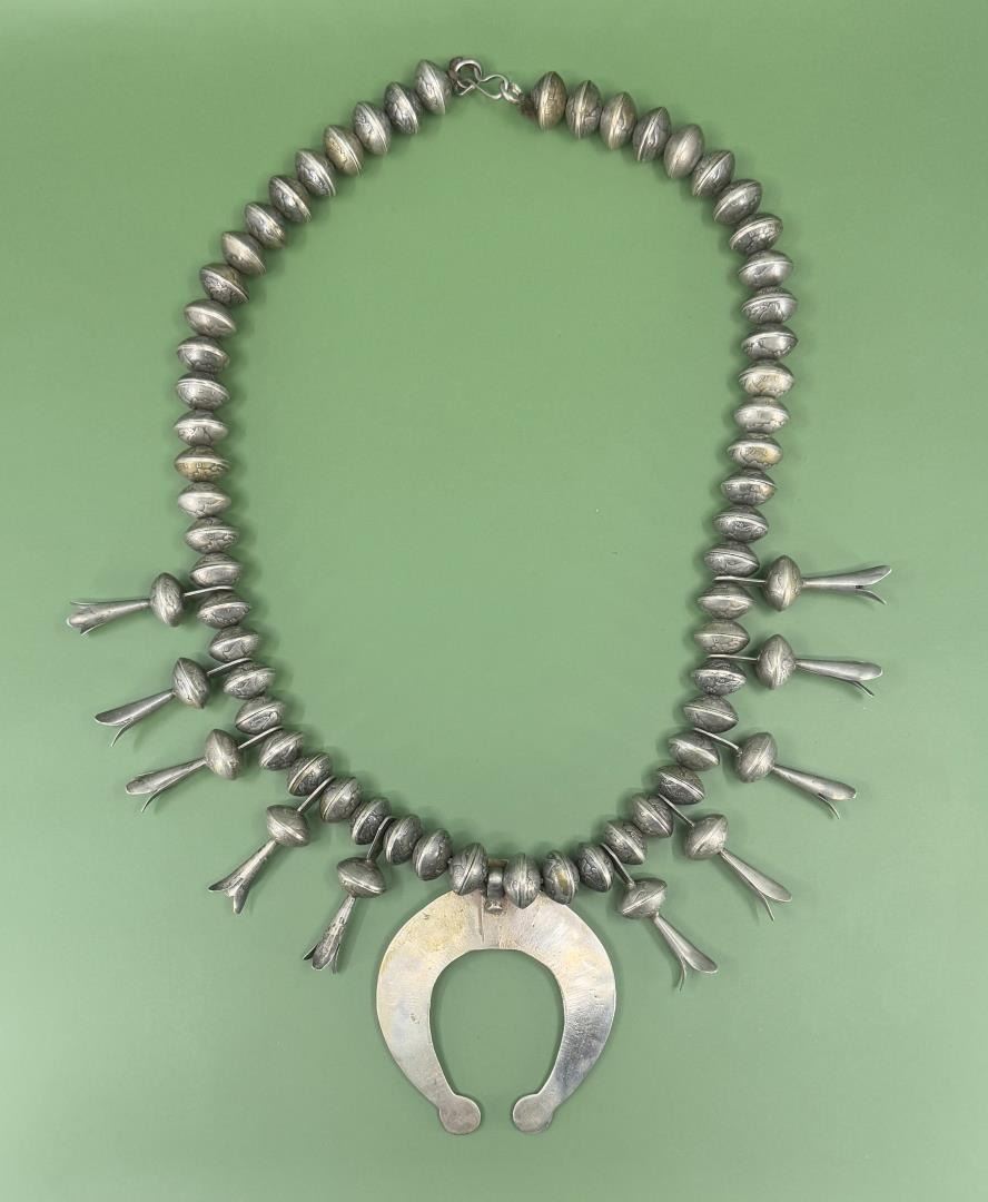 Mercury Dime Beads, Tufa Sandcast Naja's set with turquoise. 15" long. 385 grams.