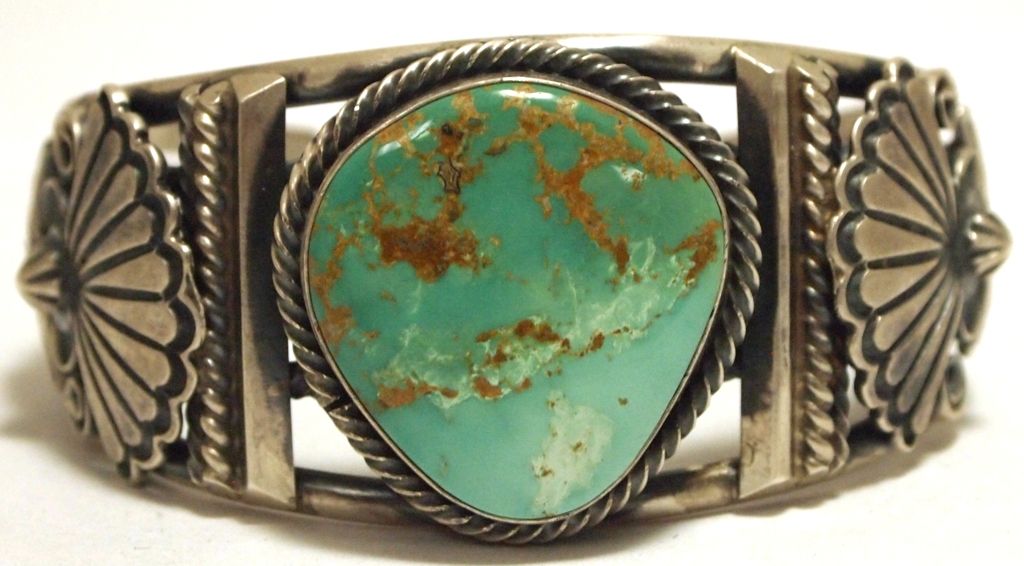 Old Pawn Navajo Green Fox Turquoise Sterling Silver Cuff Bracelet - Emer Thompson