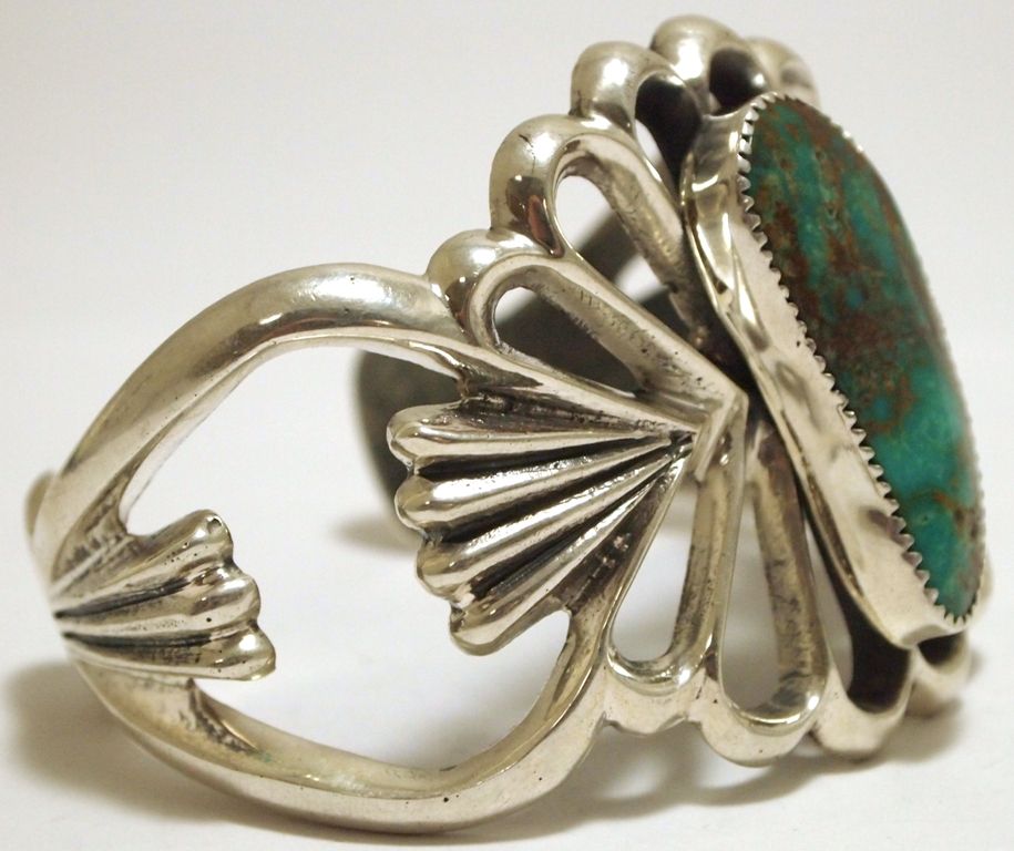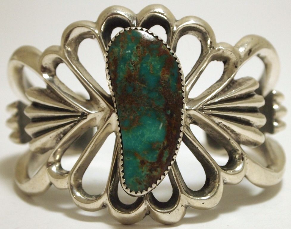 Old Pawn Navajo Green Fox Turquoise Sterling Silver Cuff Bracelet - WBH