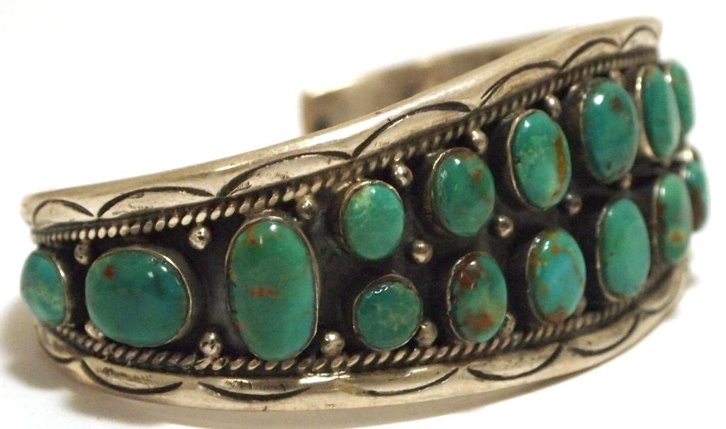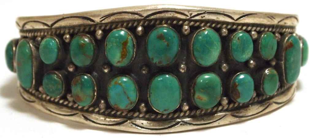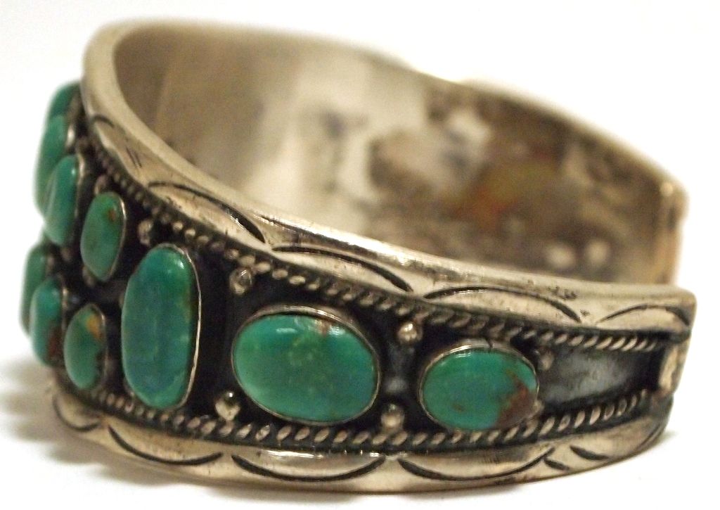 Old Pawn Navajo Green Turquoise Sterling Silver Cuff Bracelet - DL