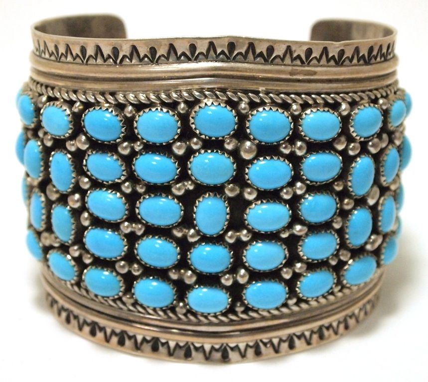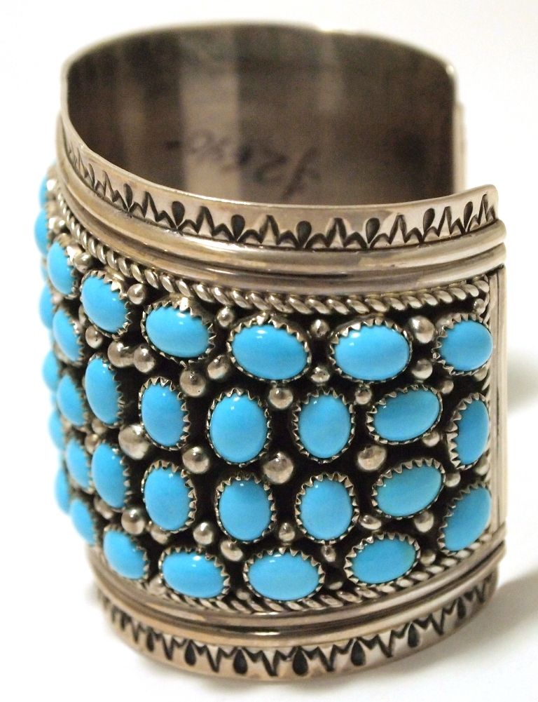 Old Pawn Navajo Kingman Turquoise Cluster Sterling Silver Cuff Bracelet - LJ