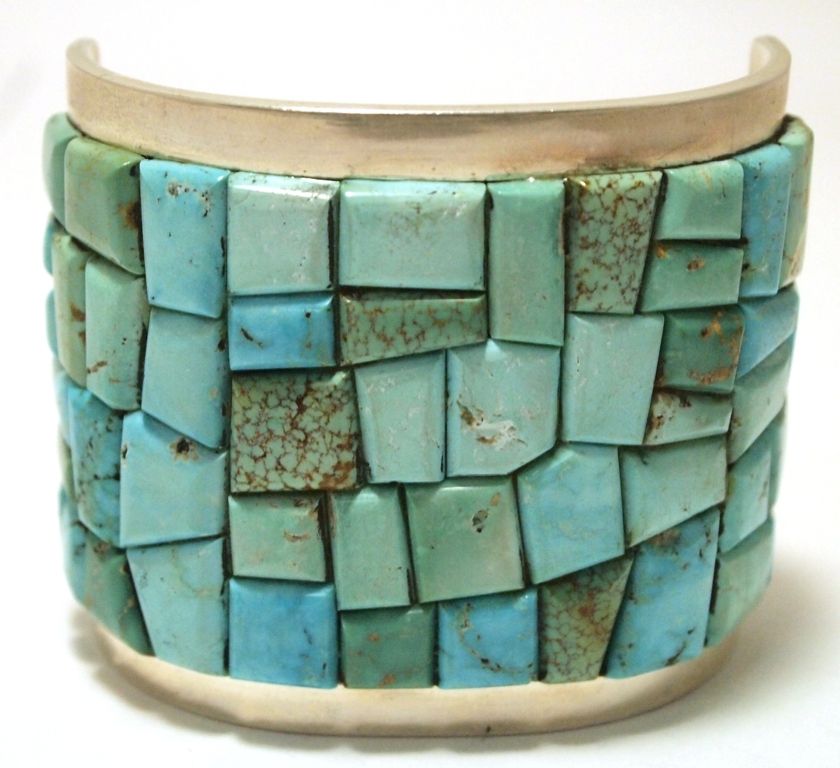 Old Pawn Navajo Kingman Turquoise Overlay Sterling Silver Cuff Bracelet - Tommy Jackson