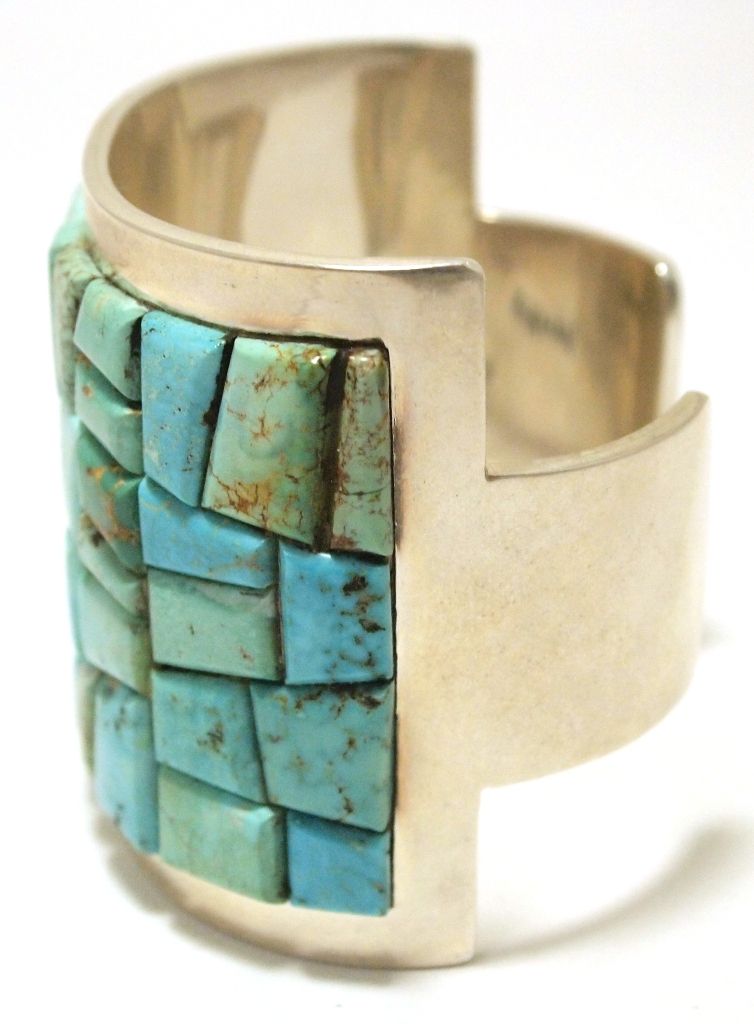 Old Pawn Navajo Kingman Turquoise Overlay Sterling Silver Cuff Bracelet - Tommy Jackson