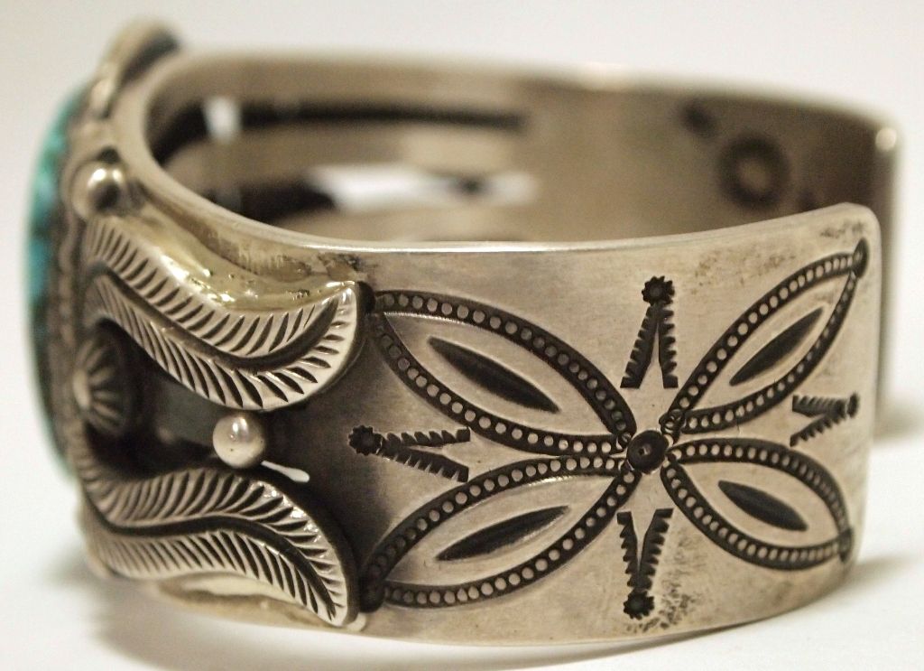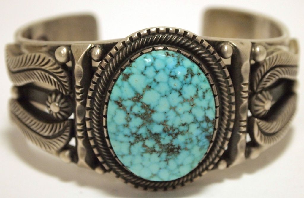 Old Pawn Navajo Kingman Turquoise Sterling Silver Cuff Bracelet - Calvin Martinez